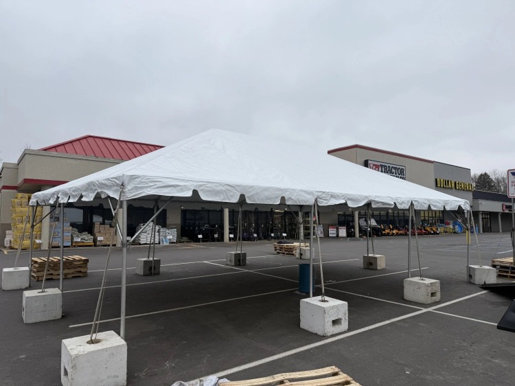 Number of concrete blocks are determined by the size of the tent. Concrete blocks must be doubled when sidewalls are added. Additional fee for transportation and handling of concrete blocks may be added. Delivery crew must have a paved path to tent location where blocks may be used.